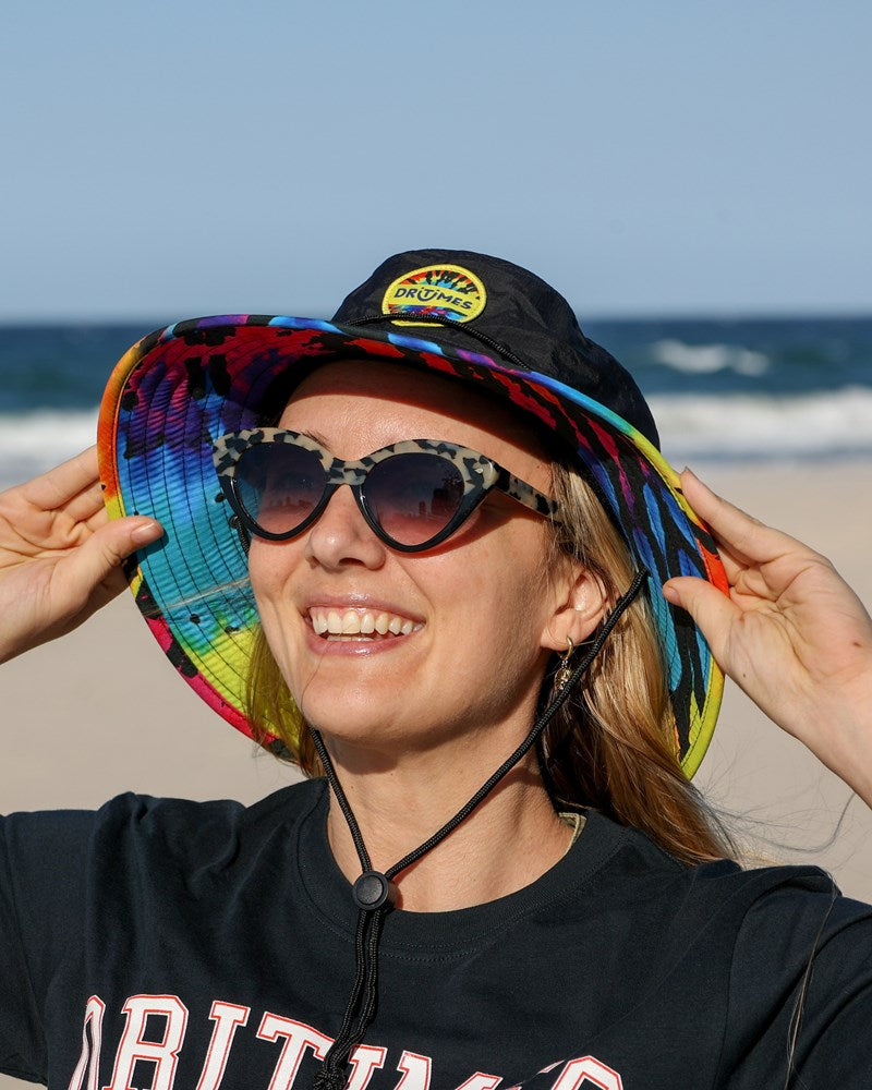 The Dritimes Bucket Hat delivers an ultra comfortable fit and has been built with all conditions in mind.. It's a true alrounder! The premium water resistent performance fabric repels moisture and the wide brim keeps the sun off your face to ensure you are getting the most out of every activity! The soft and flexible brim allows the hat to float in water while the wide brim provides 360 degrees of cover. To finish this premium look, the Staple Bucket has a woven front patch and plush internal sweatband combining quality design with extreme functionality. Enjoy every adventure in the Dritimes Staple Bucket Hat. Material: 100% Poly woven moisture wicking performance material Size: OSFM - One size fits most Fits head circumference between 21" - 25" (55-60cm) Protection Sun Smart Wide brim for 360 degrees of cover Water Resistent Features: Soft and flexible brim to allow hat to float in water Adjustable headband and chin strap Premium woven front patch Plush internal sweatband