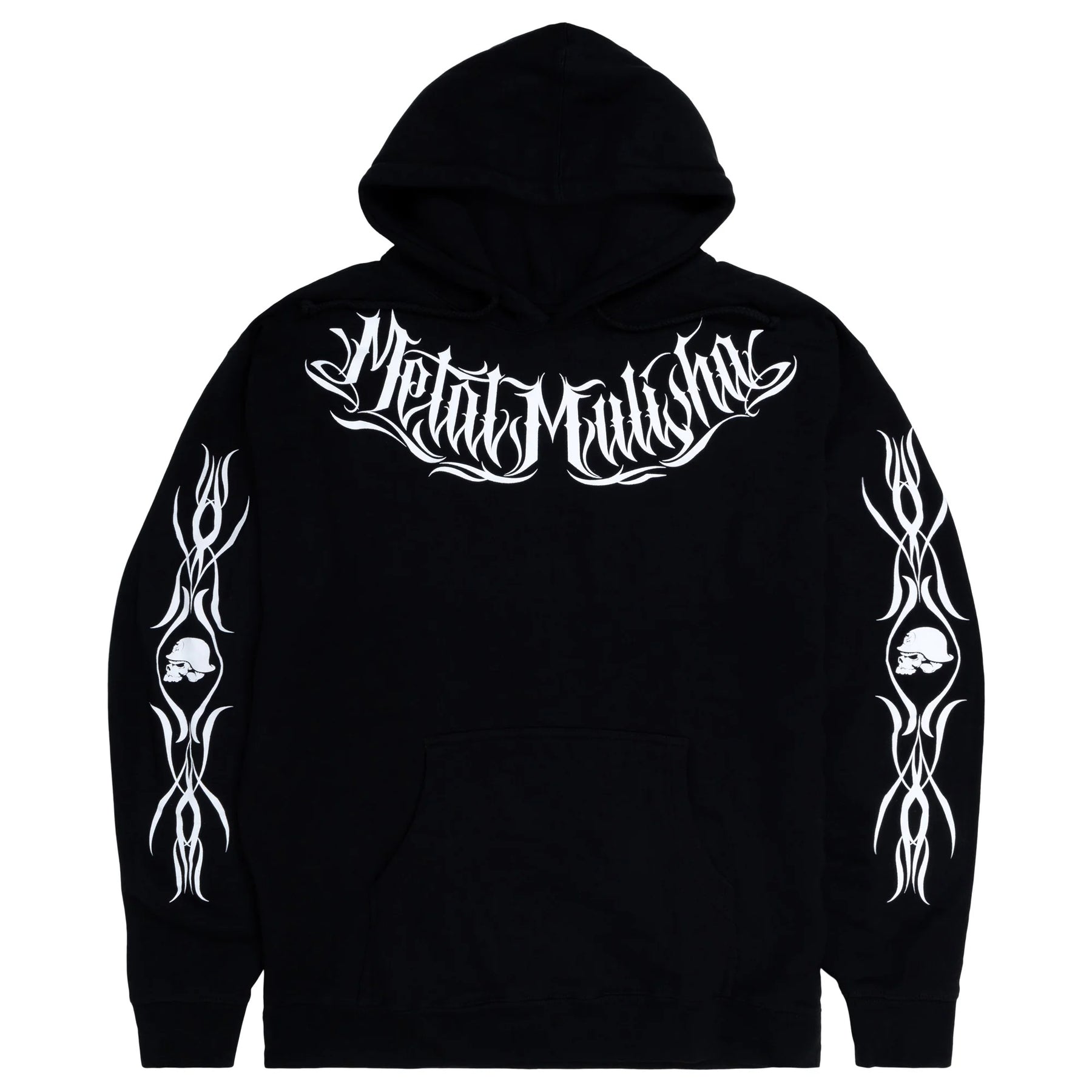 The Twisted Heavyweight Hoodie in Black features the custom Metal Mulisha art large across the front collar and down the sides of both sleeves. One of the heavier weight fleece we offer, it's built sturdy yet soft and comfortable and has a relaxed fit that is true to size.